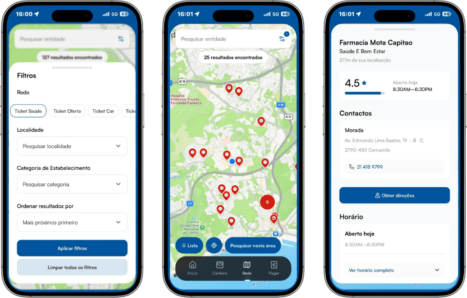 Com a APP My Ticket ® pode aceder à lista completa dos estabelecimentos aderentes ao Ticket Saúde e pesquisar a sua localização.